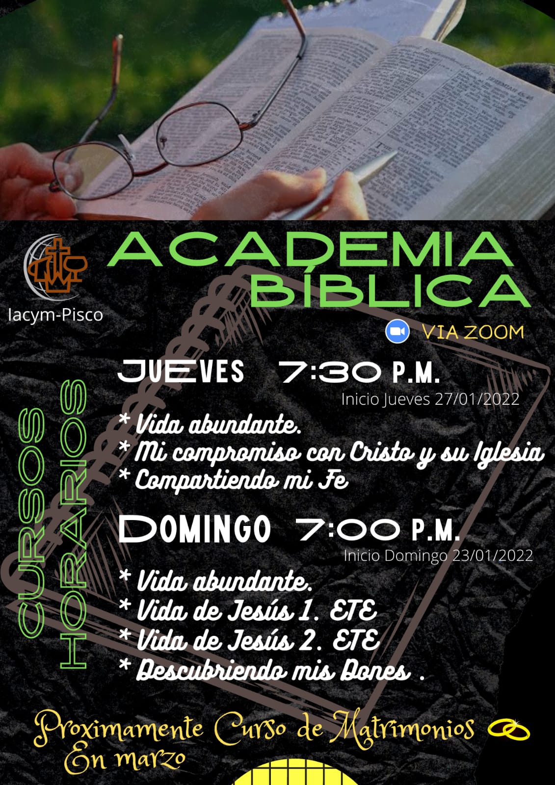 - Academia Bíblica. Domingo 12:00pm – 1:00pm